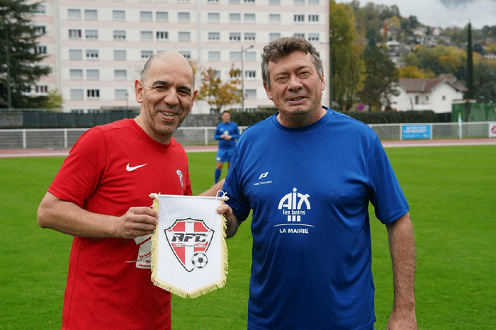 Bains, conduite par le maire Renaud Beretti, à l’équipe vétérans d’Aix